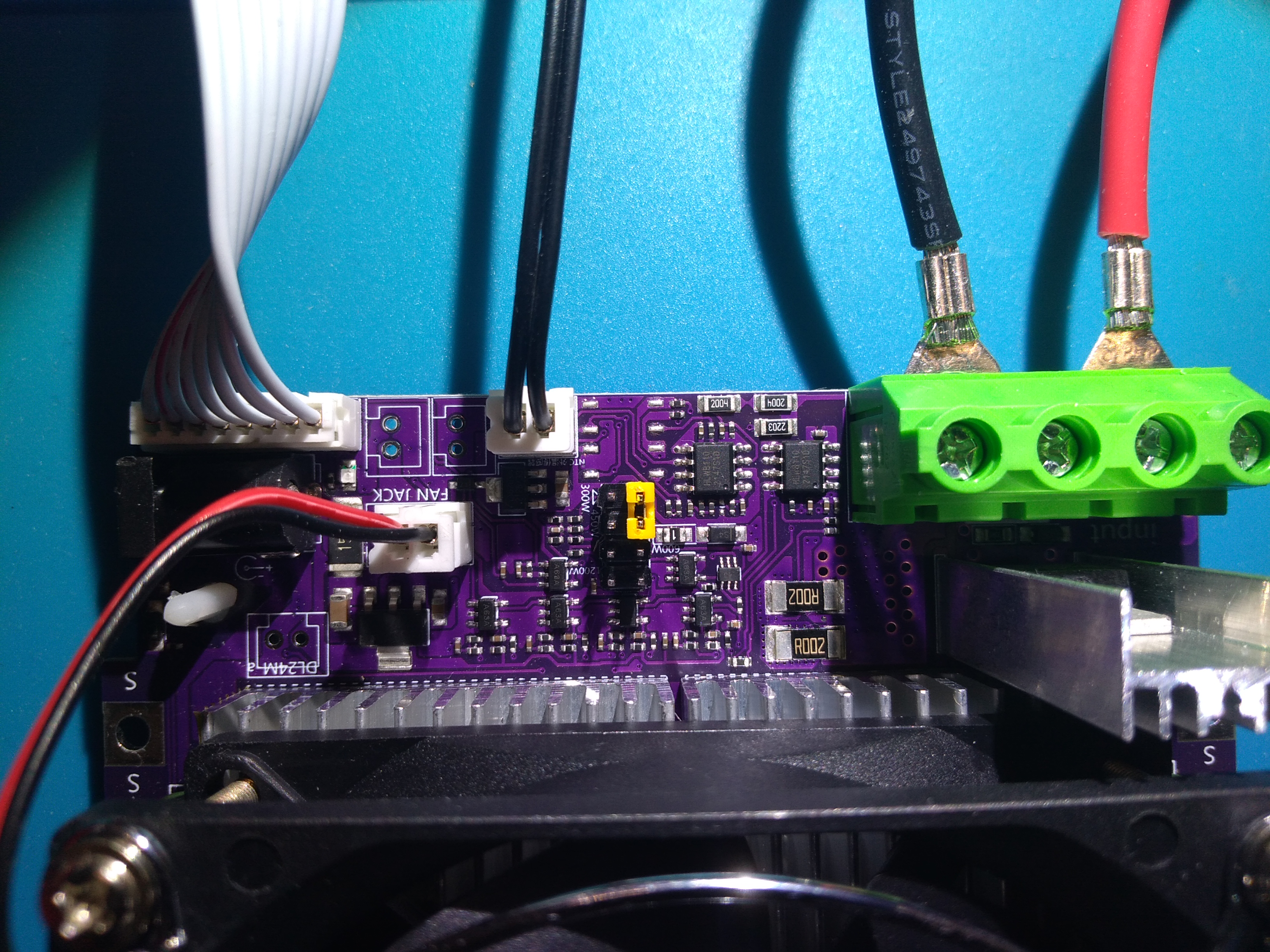 Each power module is cooled by a 8cm fan blowing air through 4 smalls heatsinks ( one per power mosfet )