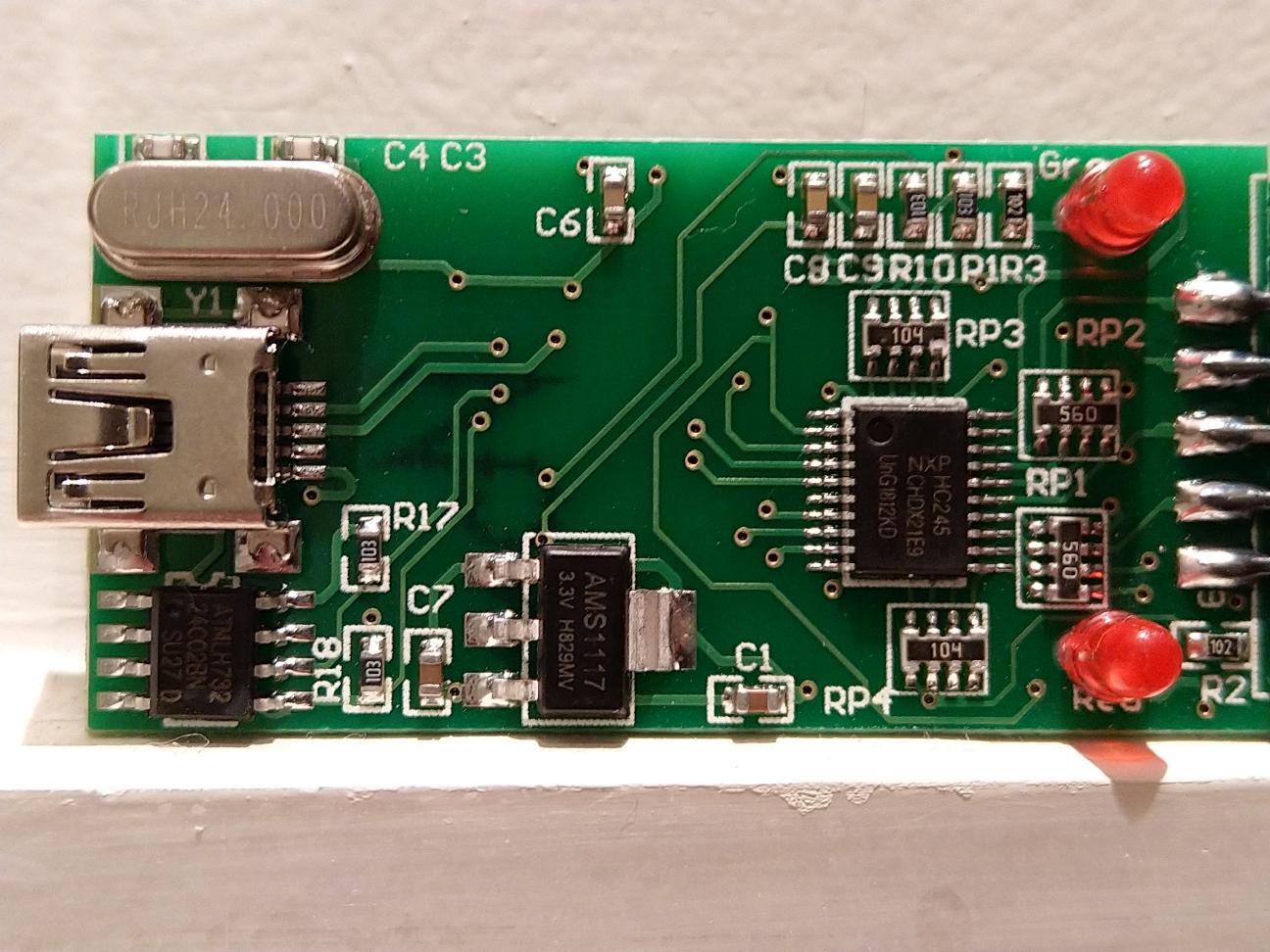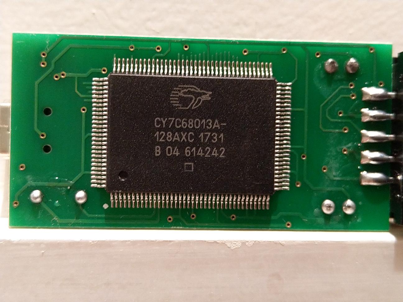 - Main chip: Cypress CY7C68013A-128AXC (FX2)