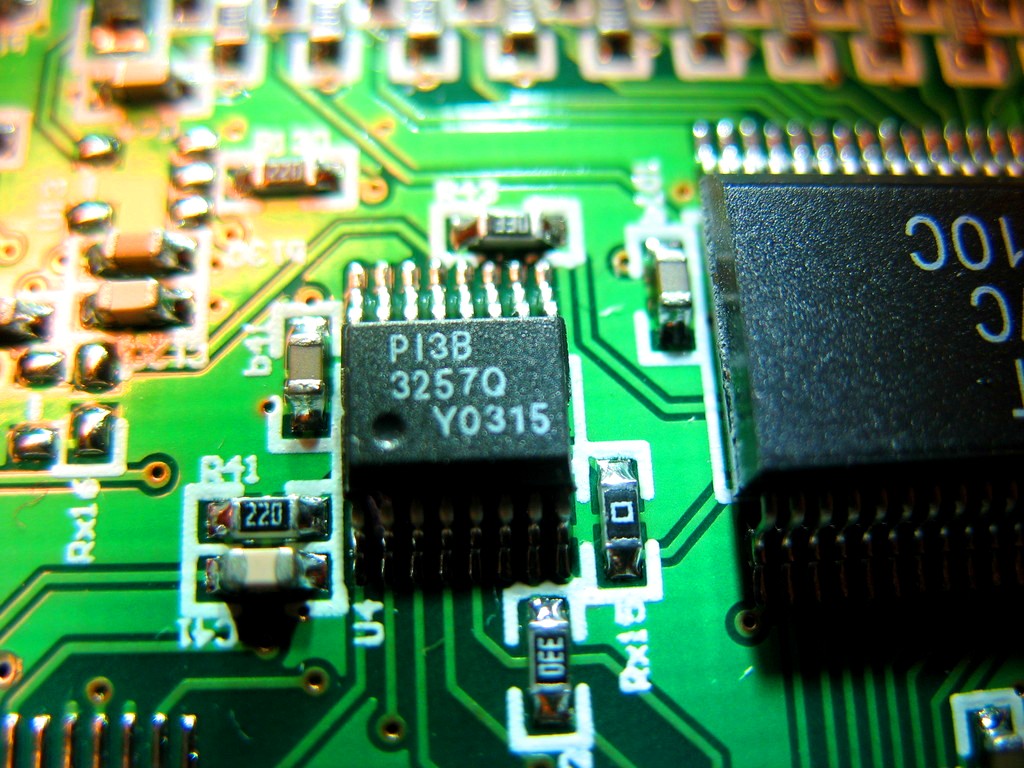 - 3.3V, Quad 2:1 Mux/DeMux NanoSwitch: Pericom PI3B3257Q (datasheet)