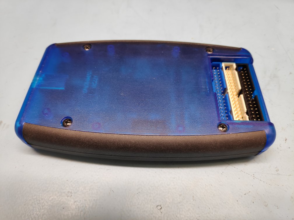 The overall design of the CoLA has two parts: A populated PCB, and an enclosure. The reference design uses a Hammond Manufacturing 1553DTBUBKBAT semi-transparent plastic enclosure. It has minimal exposed metal parts to minimize unwanted short circuits, as the unit is meant to be used near exposed PCB's. The enclosure has a seperate part with a lid, originally meant to house a 9V style battery. This part is used in the CoLA to expose three 34-pin headers to input all signals. Minimal modification is needed to the enclosure to accomodate the PCB.