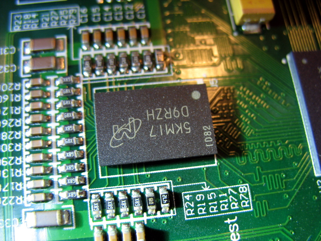 - 2x Micron MT47H64M16HR-25E:H (1Gbit DDR2 SDRAM, BGA)