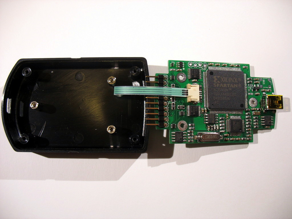 The ScanaPLUS is connected to the PC via an FTDI FT232H chip (we use libftdi to talk to it) that gets configured to "Sync FIFO" mode by the software, allowing theoretical transfer speeds up to 40 Mbyte/second. The FT232H uses the standard VID/PID of 0403:6014, but has an iProduct field that contains the string "SCANAPLUS" so we can reliably say whether a given device with 0403:6014 as VID/PID is a ScanaPLUS or not. The device also has a proper iSerial, allowing to even uniquely distinguish two different ScanaPLUS devices connected to the same PC.
