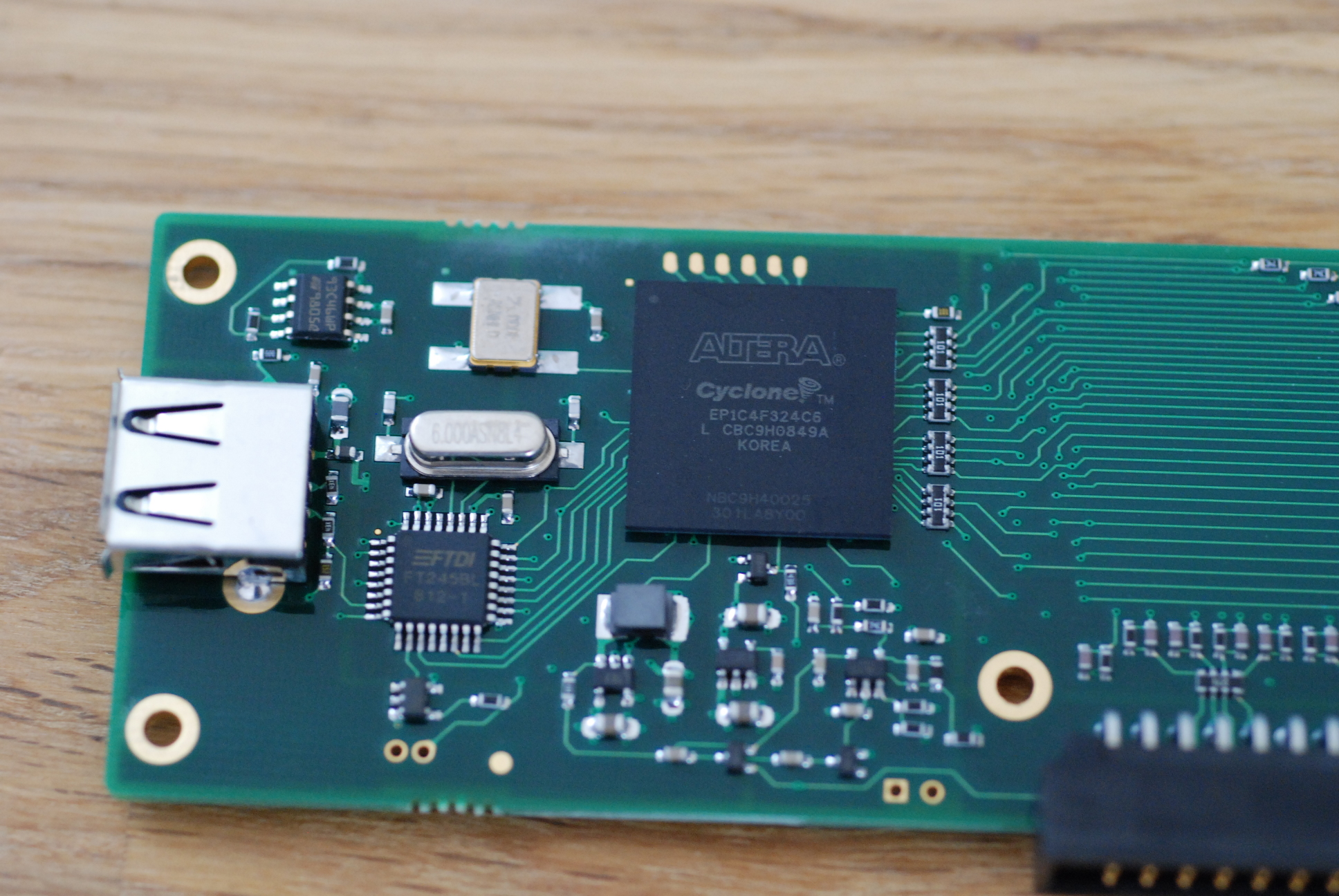 - FTDI FT245BL (USB to parallel FIFO interface)