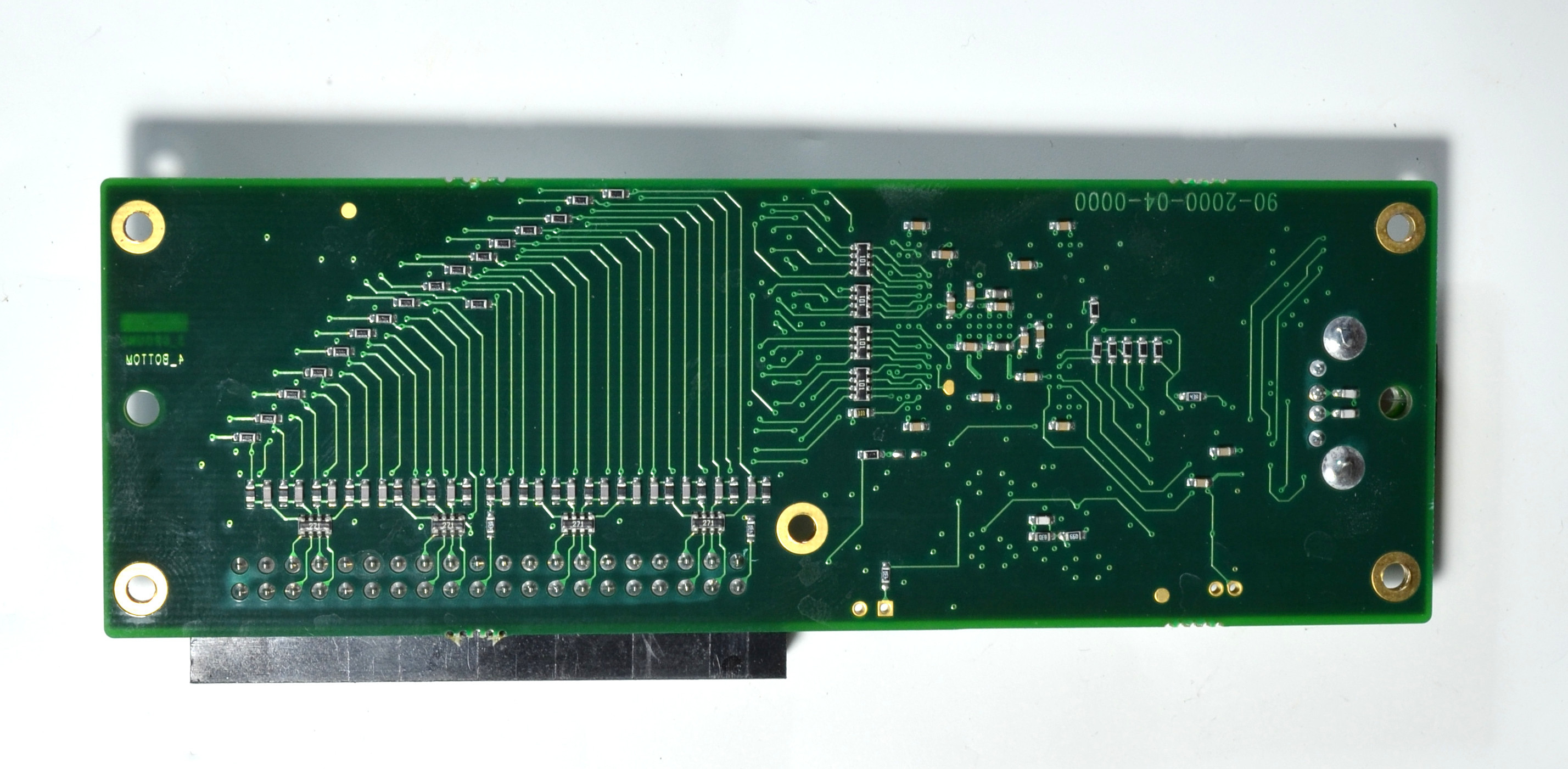 There are four groups with white, blue, yellow, and green (data, clock) and black (ground) heat shrunk sleeves with 8 + 1 (+ 1) wires each.