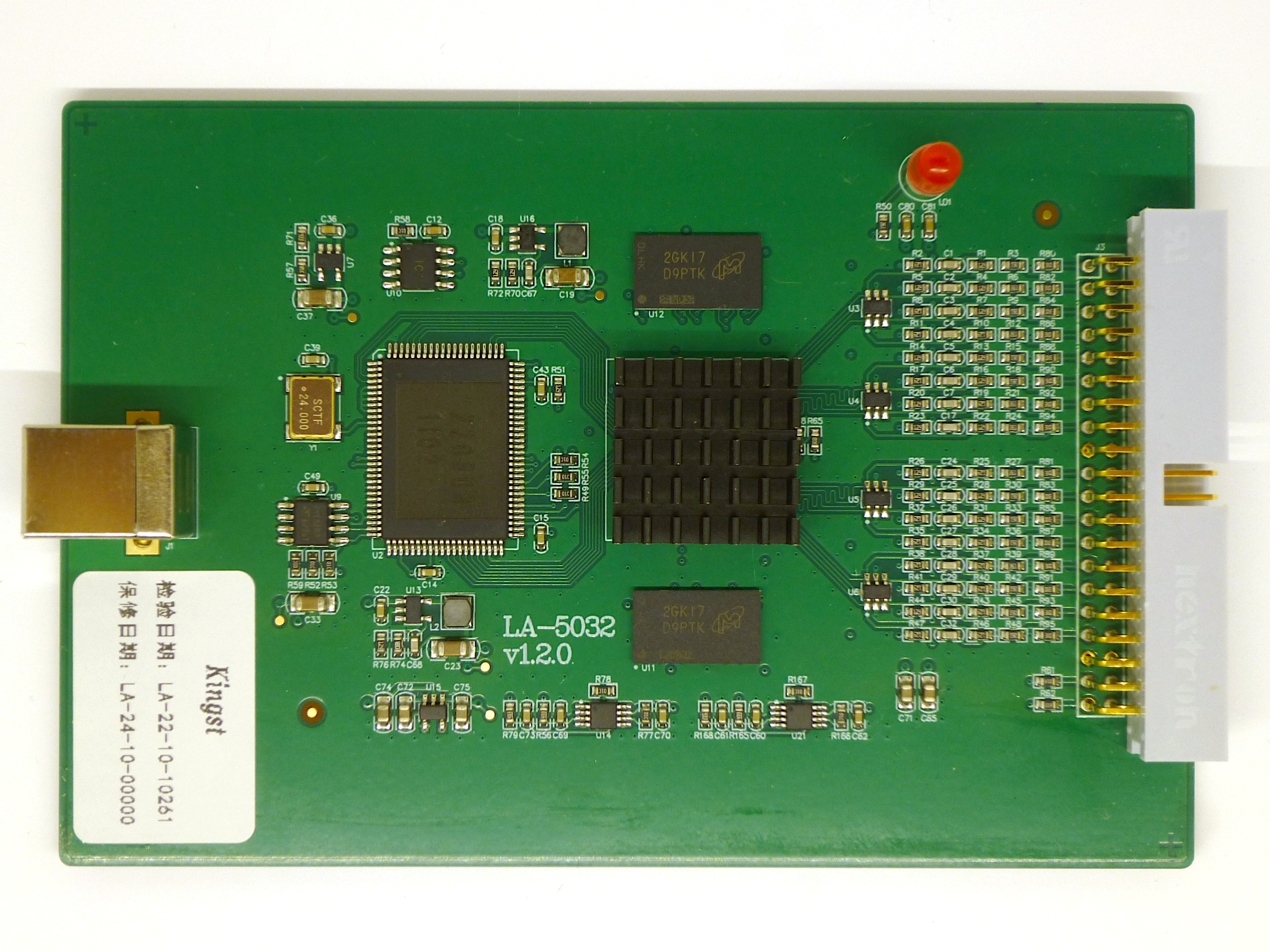 The Kingst LA5032 is a USB-based, 32-channel logic analyser with 500MHz maximum sampling rate and 512MiB sample memory. It is part of the Kingst LA Series and is supported by the kingst-la2016 sigrok driver.