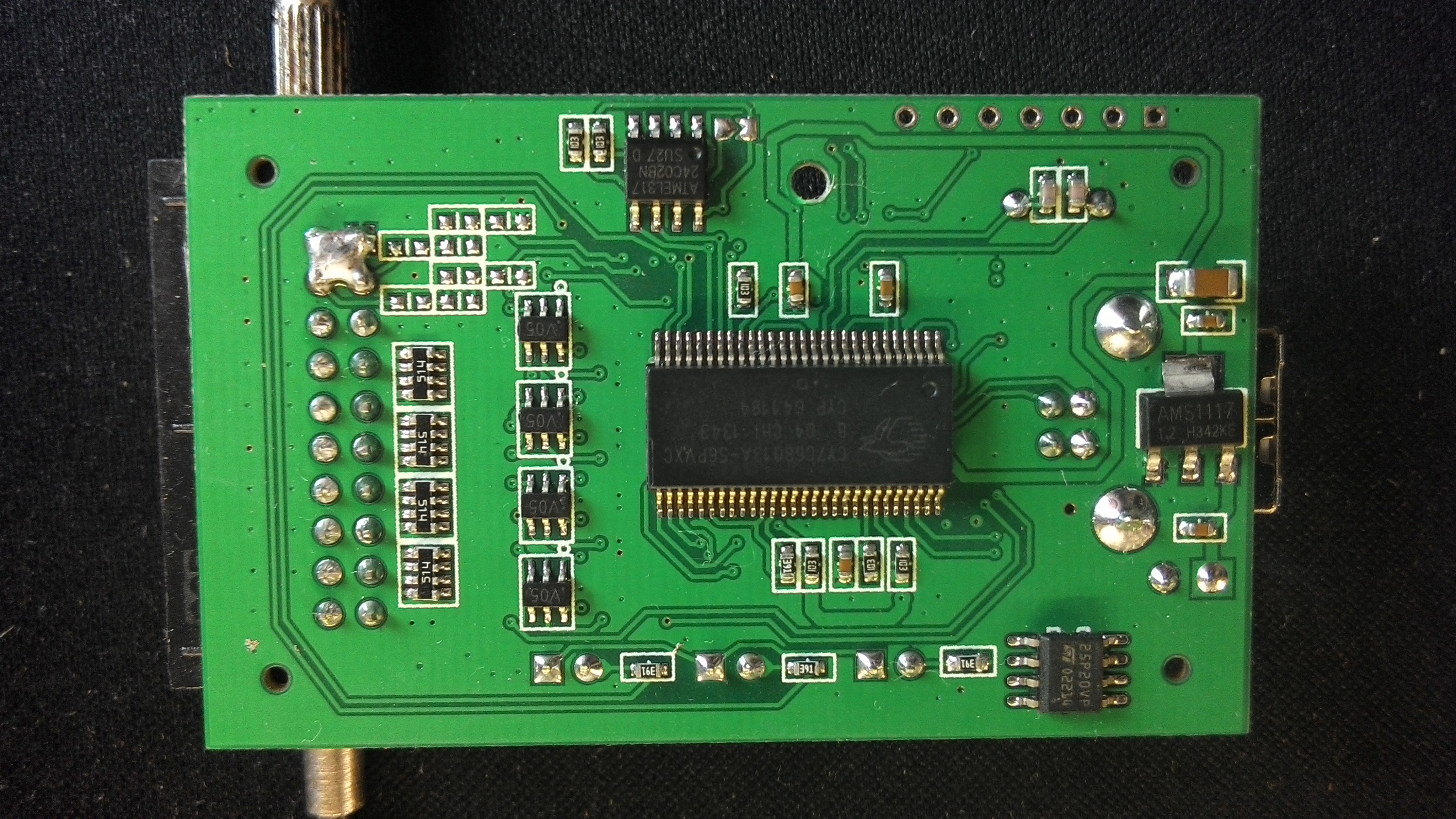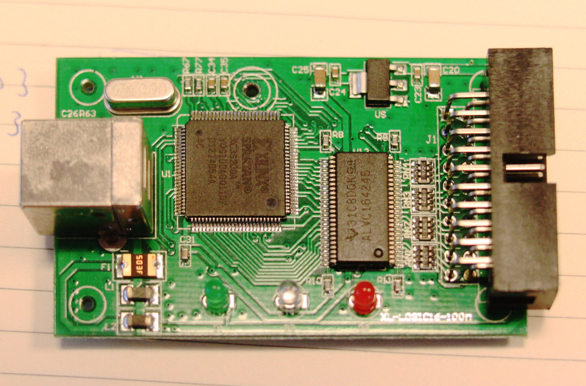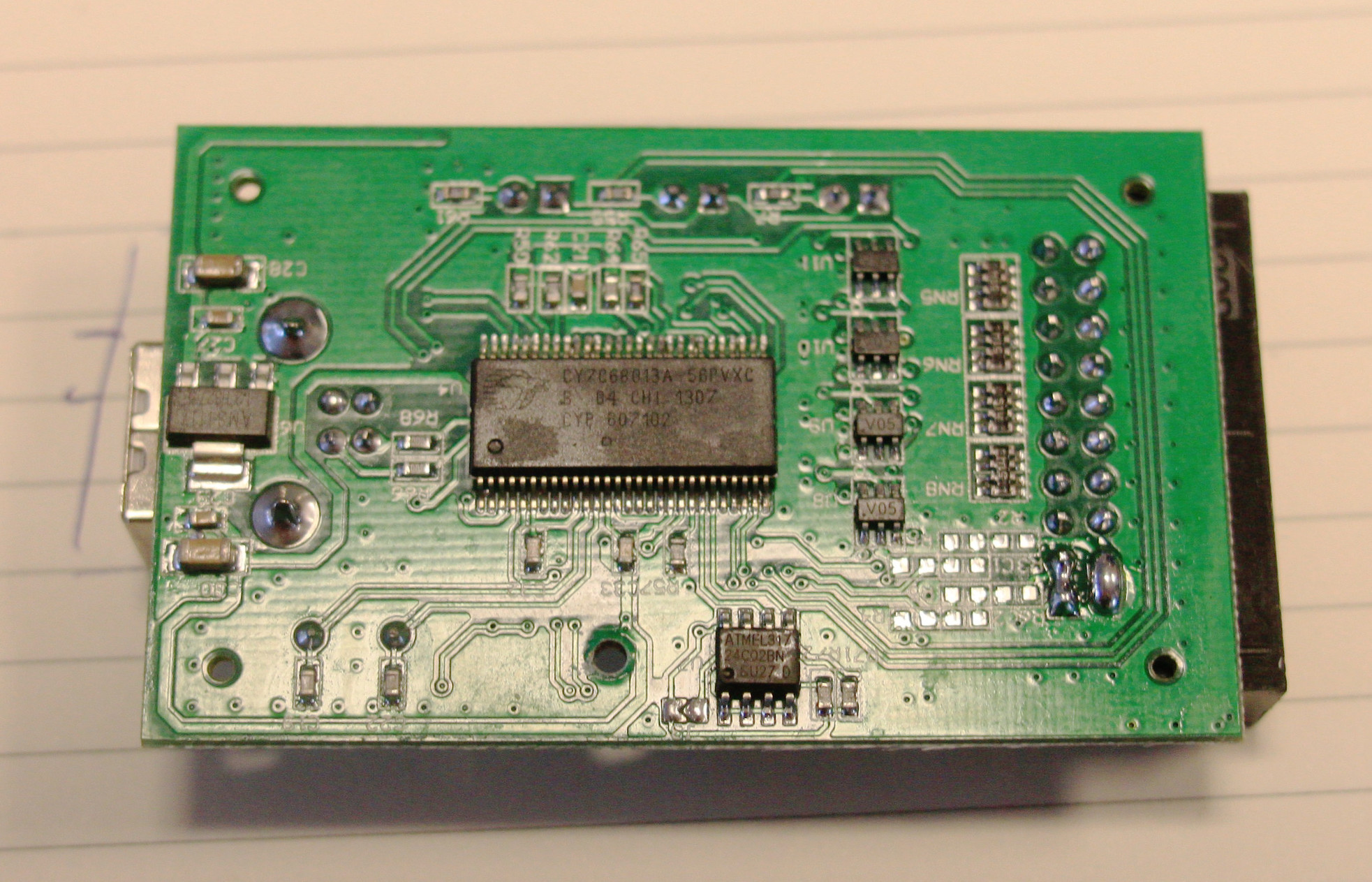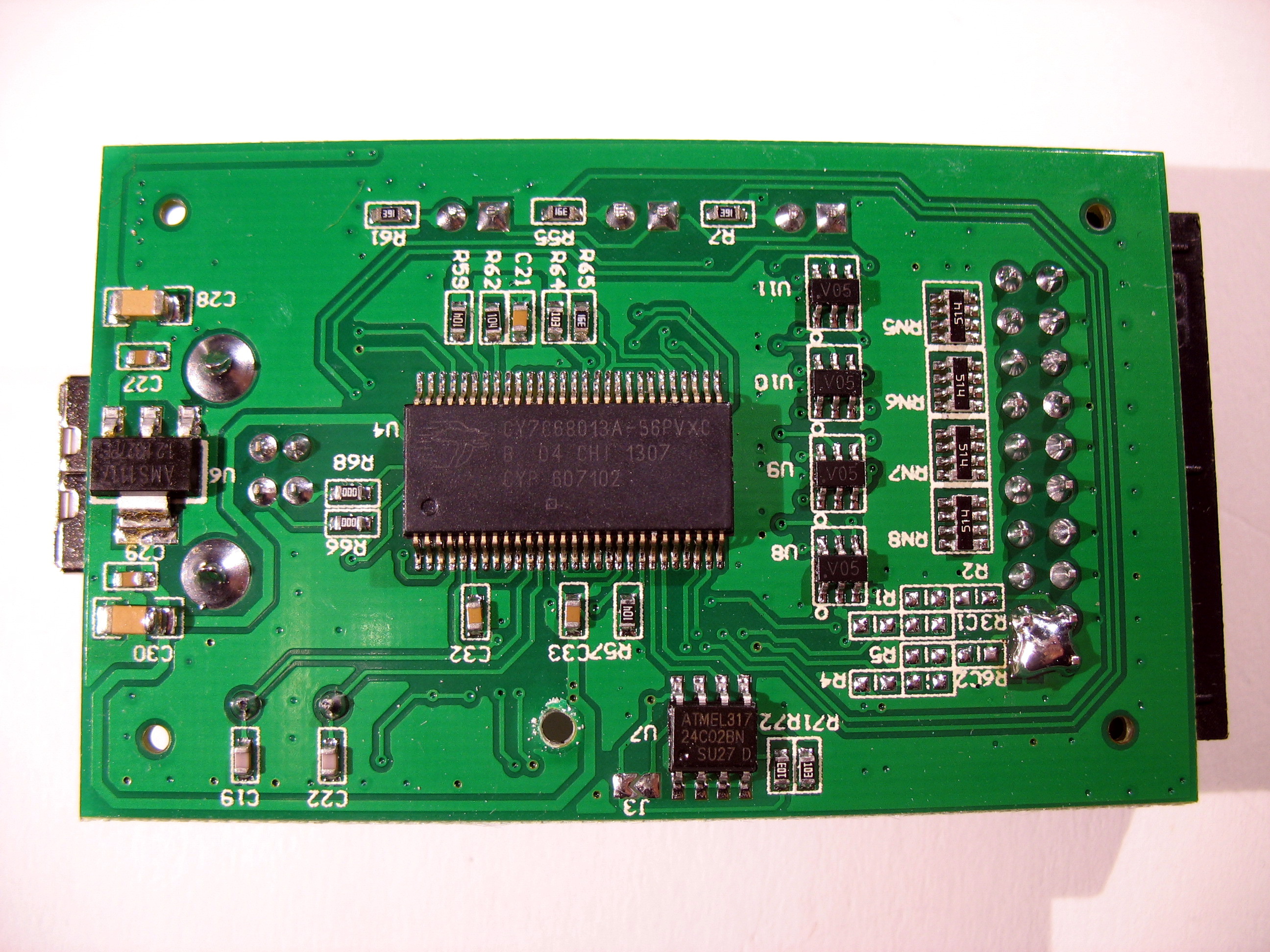 - USB interface chip: Cypress CY7C68013A-56PVXC (FX2LP) (datasheet)