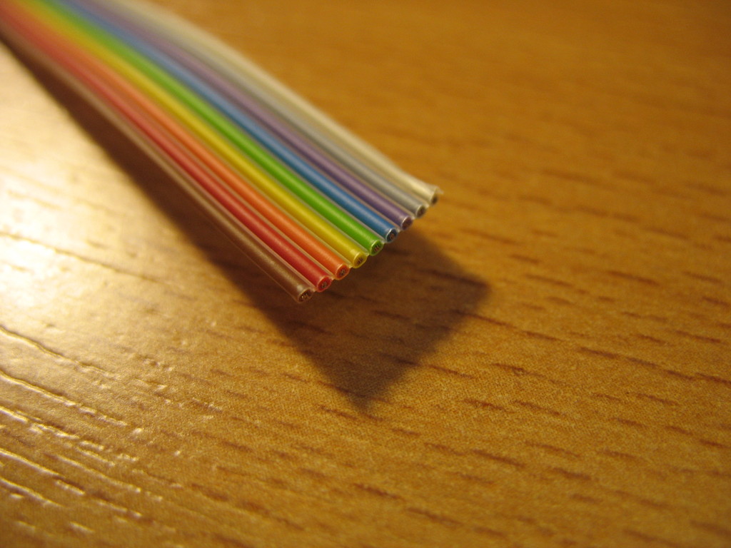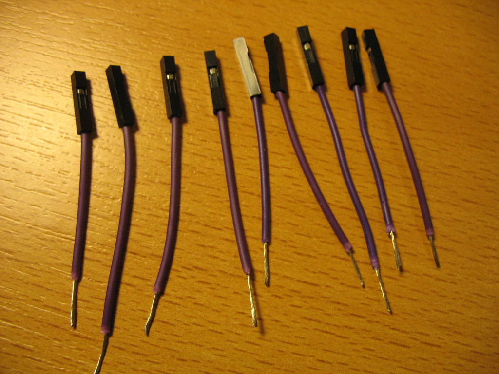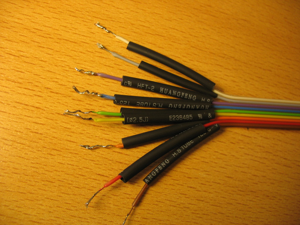 - 10-pin colored ribbon cable, such as this one. The colors match the one shipped with the Ant8 (white, gray, purple, blue, green, yellow, orange, red, brown) if you remove the 10th (black) lead. The brown lead is GND.