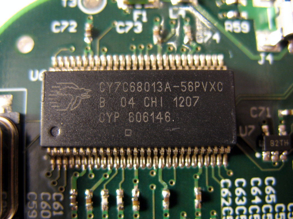 - USB interface chip: Cypress CY7C68013A-56PVXC (FX2LP) (datasheet)