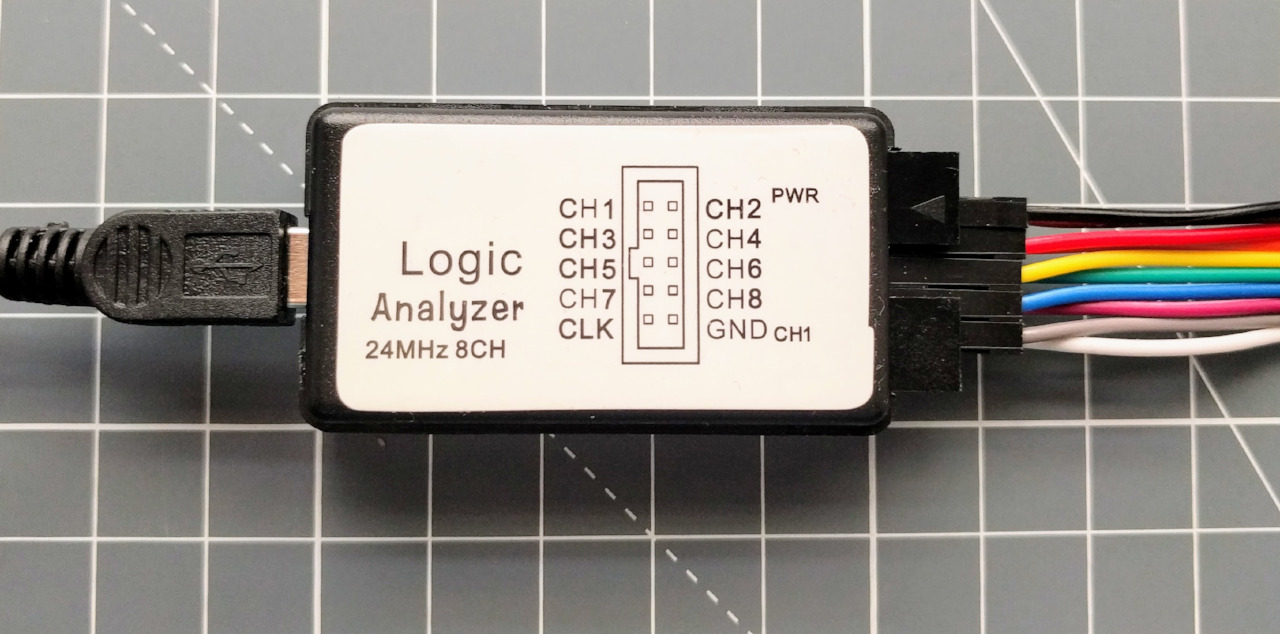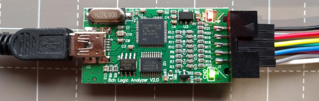 The VKTECH is a fairly standard Cypress FX2 based 8 channel 24 MHz logic analyzer, it is most similar to the ARMFLY_Mini-Logic and MCU123_USBee_AX_Pro_clone devices, though has differences from both of them (SMD LEDs, QFN package unlike MCU123, transceiver IC unlike ARMFLY).