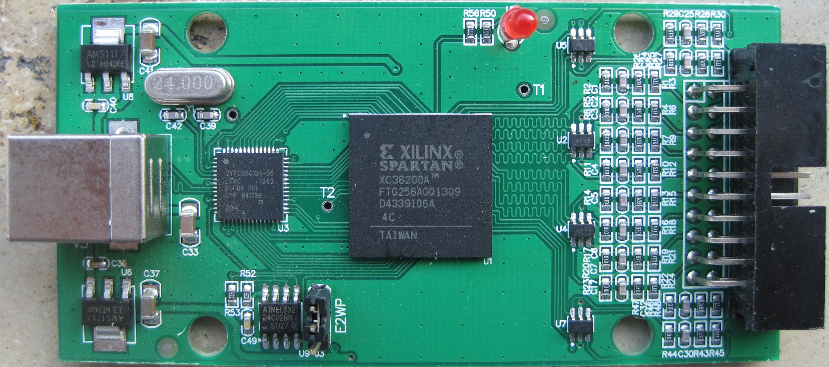 - USB interface chip: Cypress CY7C68013A-56LTXC (FX2LP) (datasheet)