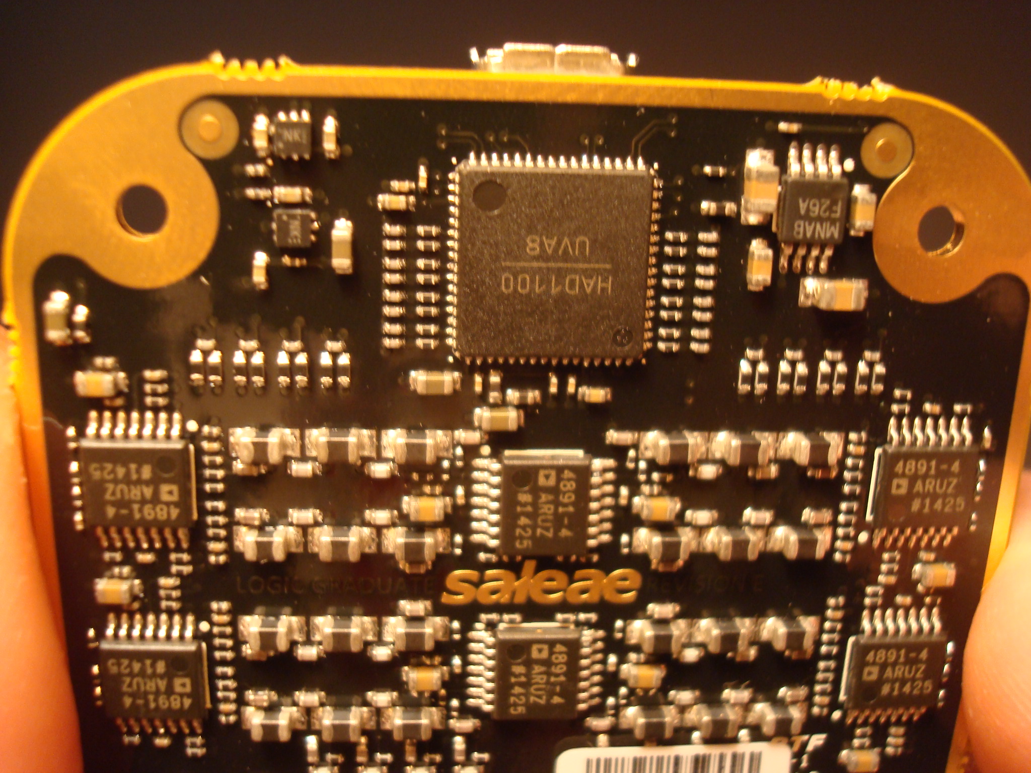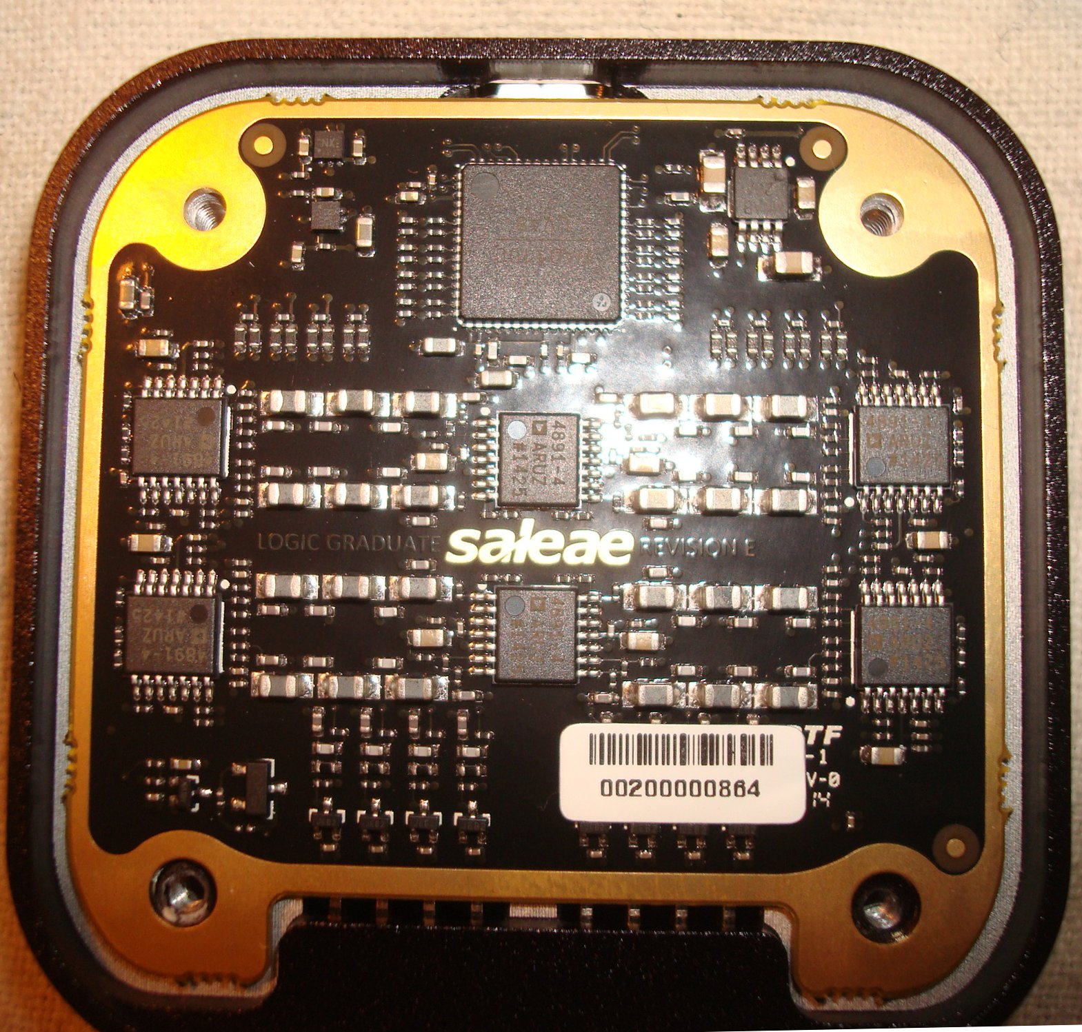The Saleae Logic8 is a USB-based, 8-channel logic analyzer with 100/50/40/25MHz sampling rate (at 3/6/7/8 enabled channels).