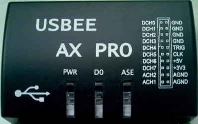 The Sysclk AX-Pro is a USB-based, 8-channel logic analyzer with up to 24MHz sampling rate, with 1 additional analog channel (theoretically 2, but only one of them can be used at a time; 3MHz analog bandwidth).