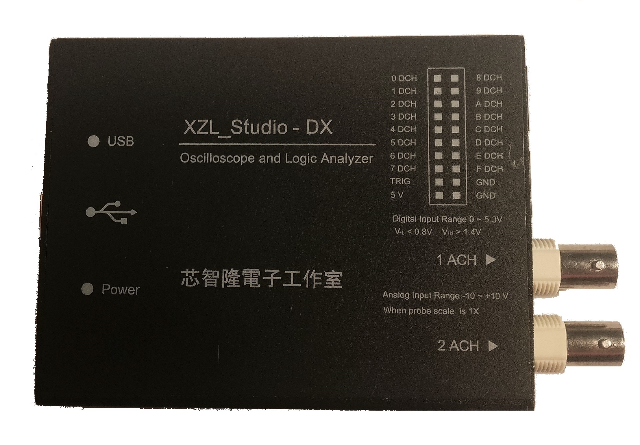 The XZL_Studio DX is a USB-based, 16-channel logic analyzer with up to 24MHz sampling rate, and with 2 additional analog channels.