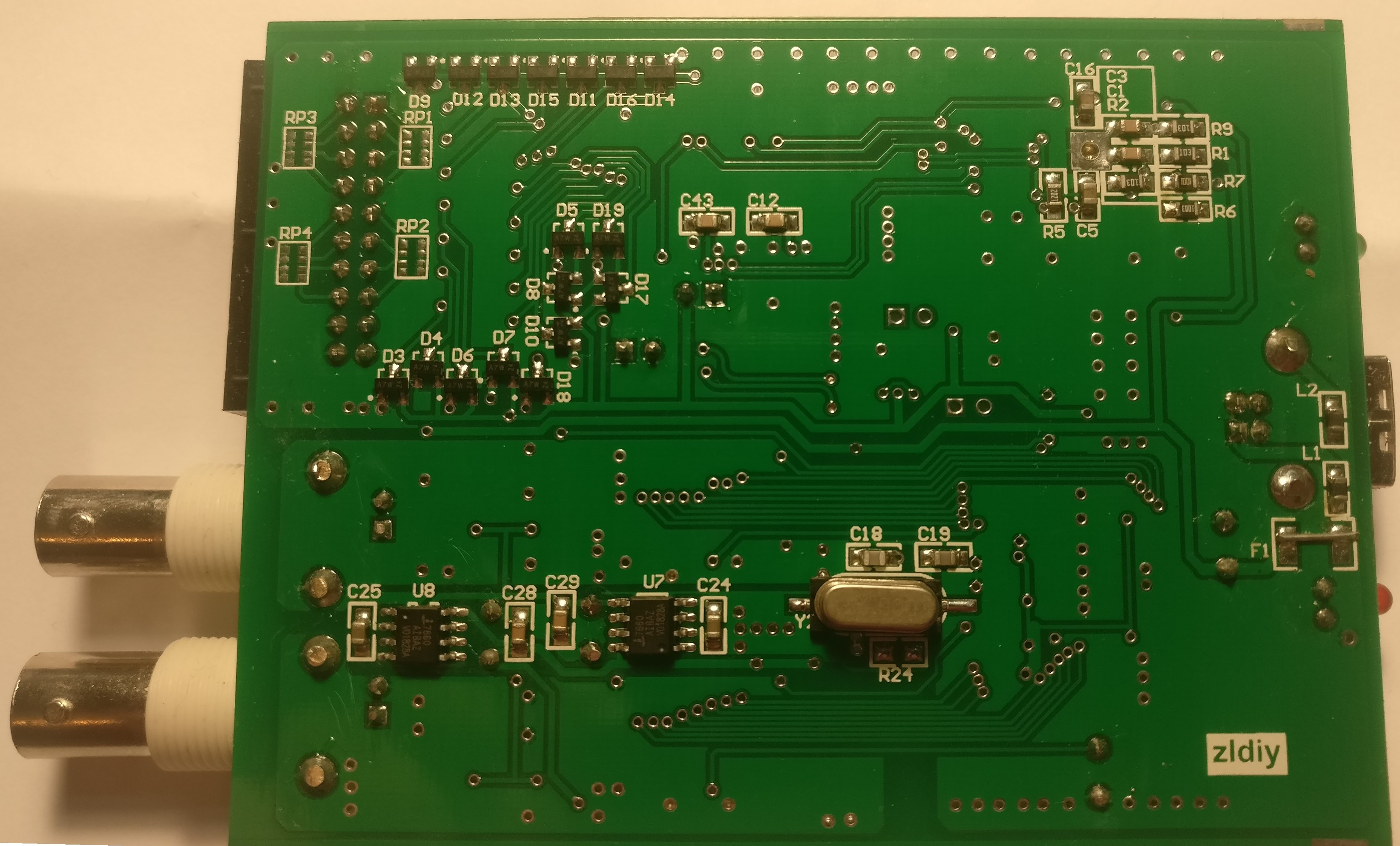 - Analog-to-Digital converter: 2x Texas Instruments TLC5510I (SO 24pin package)