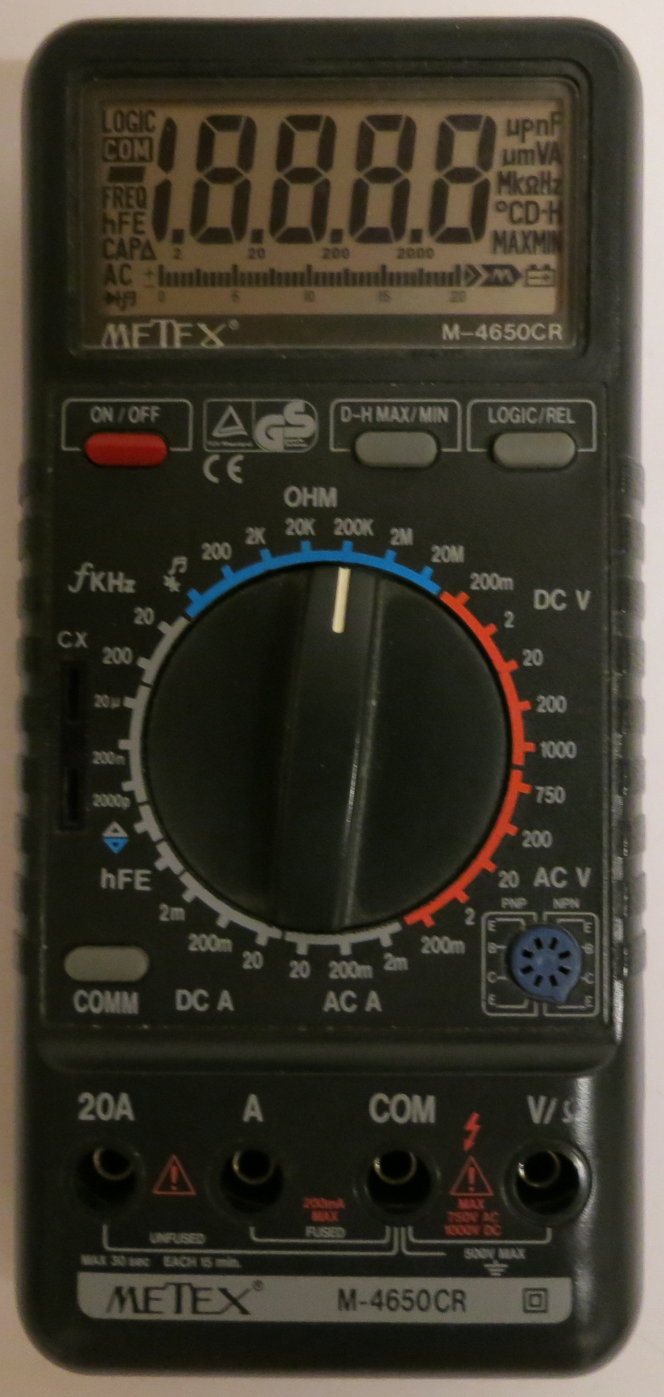 | Measurements | voltage, current, hFE, logic, capacitance, frequency, resistance, continuity, diode |