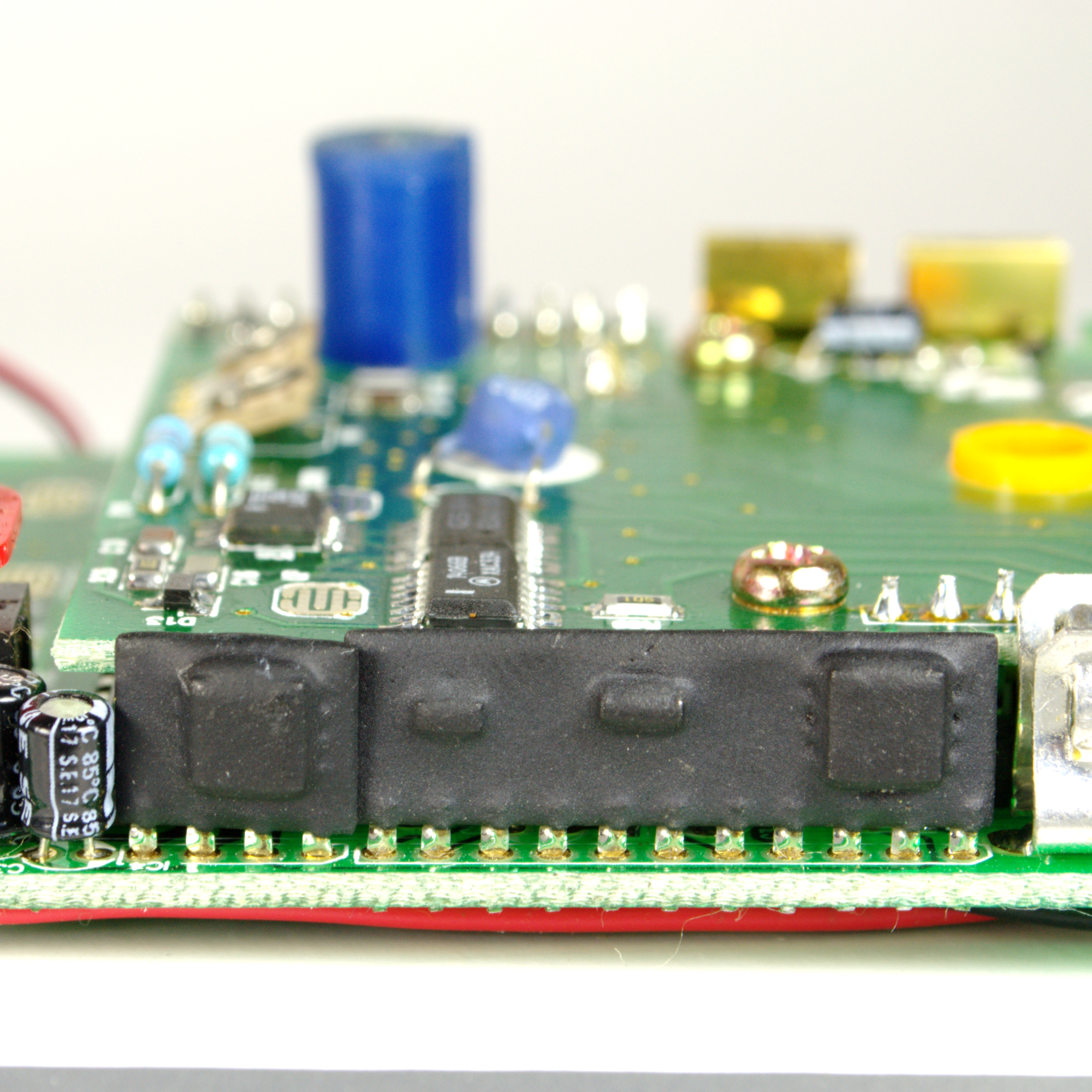 - Unidentified ICs: Two ICs, which appear to be SSOP8 packages are hidden behind black goo. The purpose of the goo is unknown.