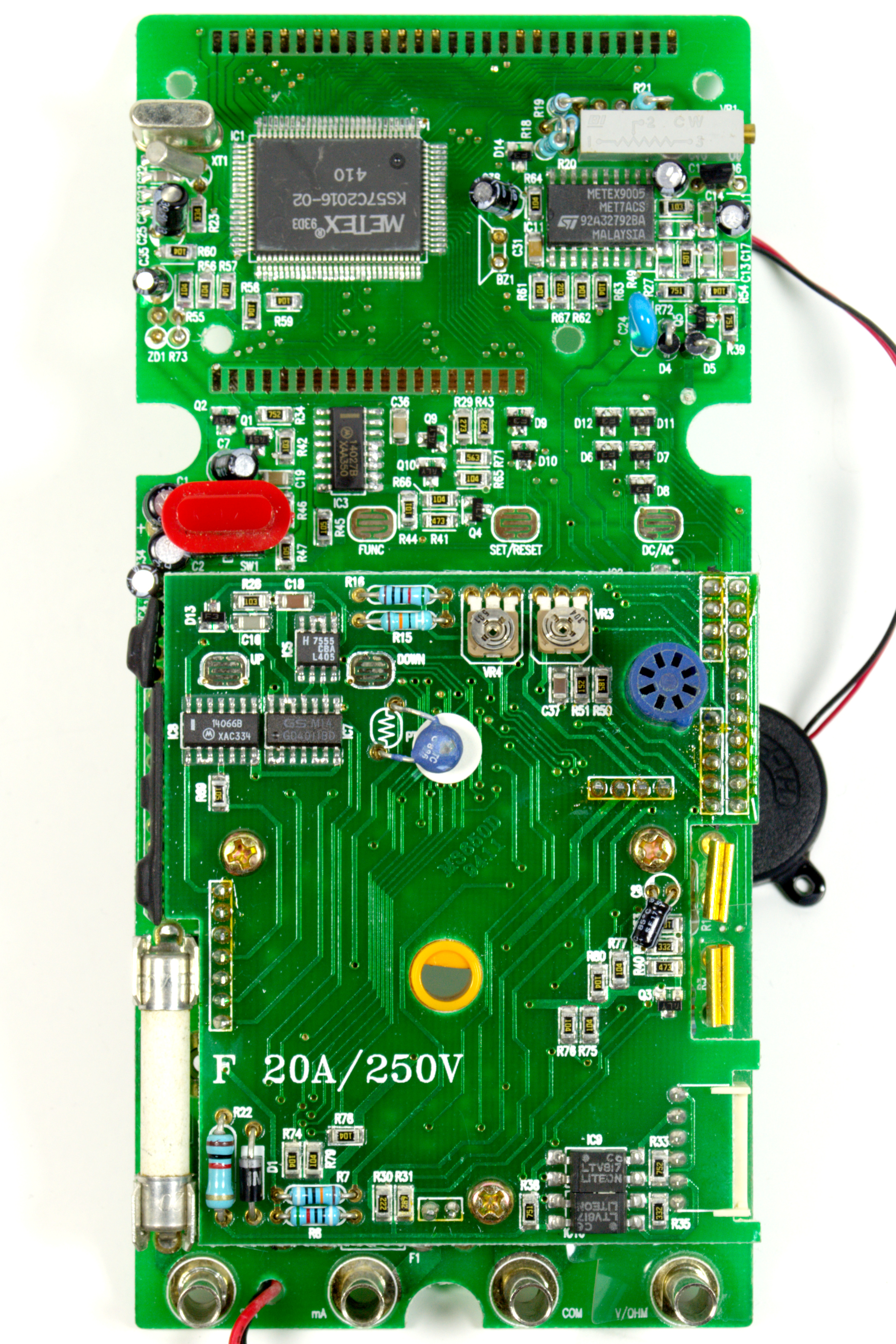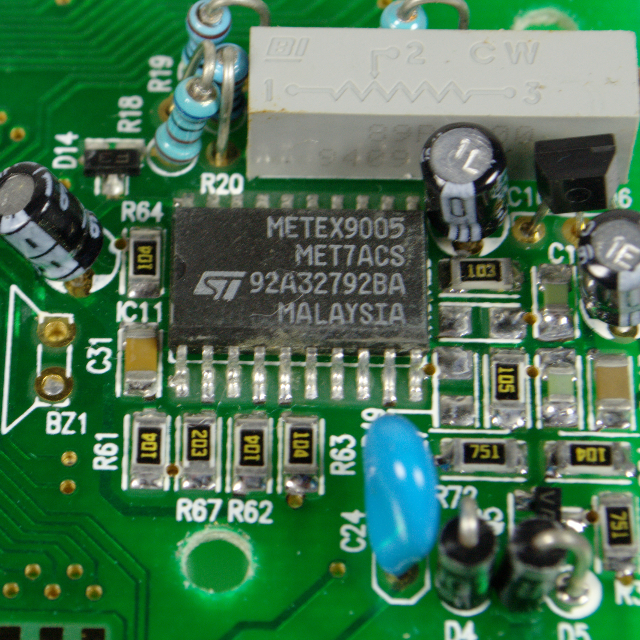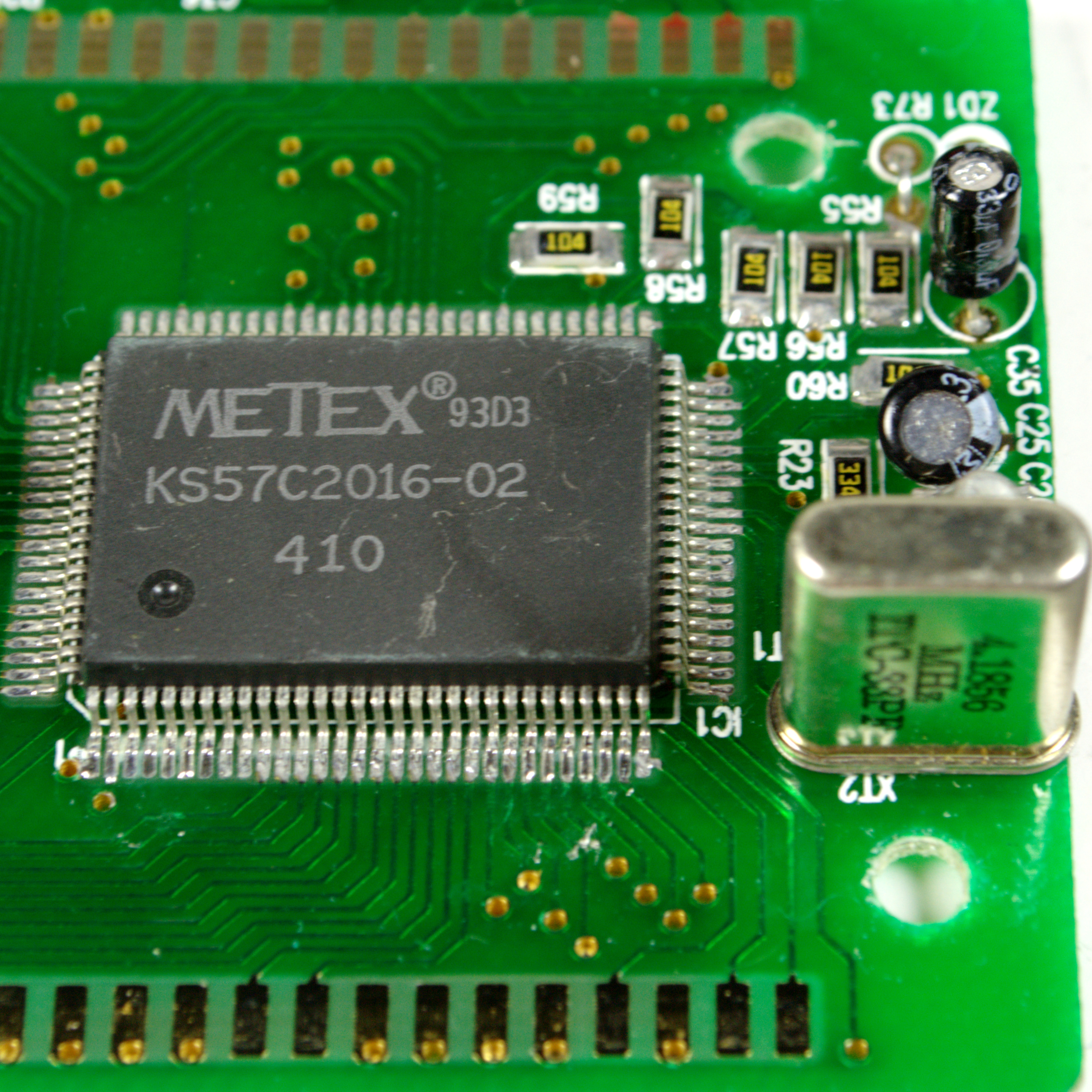 - CPU: Metex KS57C2016 (Samsung KS57C2016 4-bit microcontroller with custom Metex firmware) (marking: "Metex 93D3 KS57C2016-02 410")
