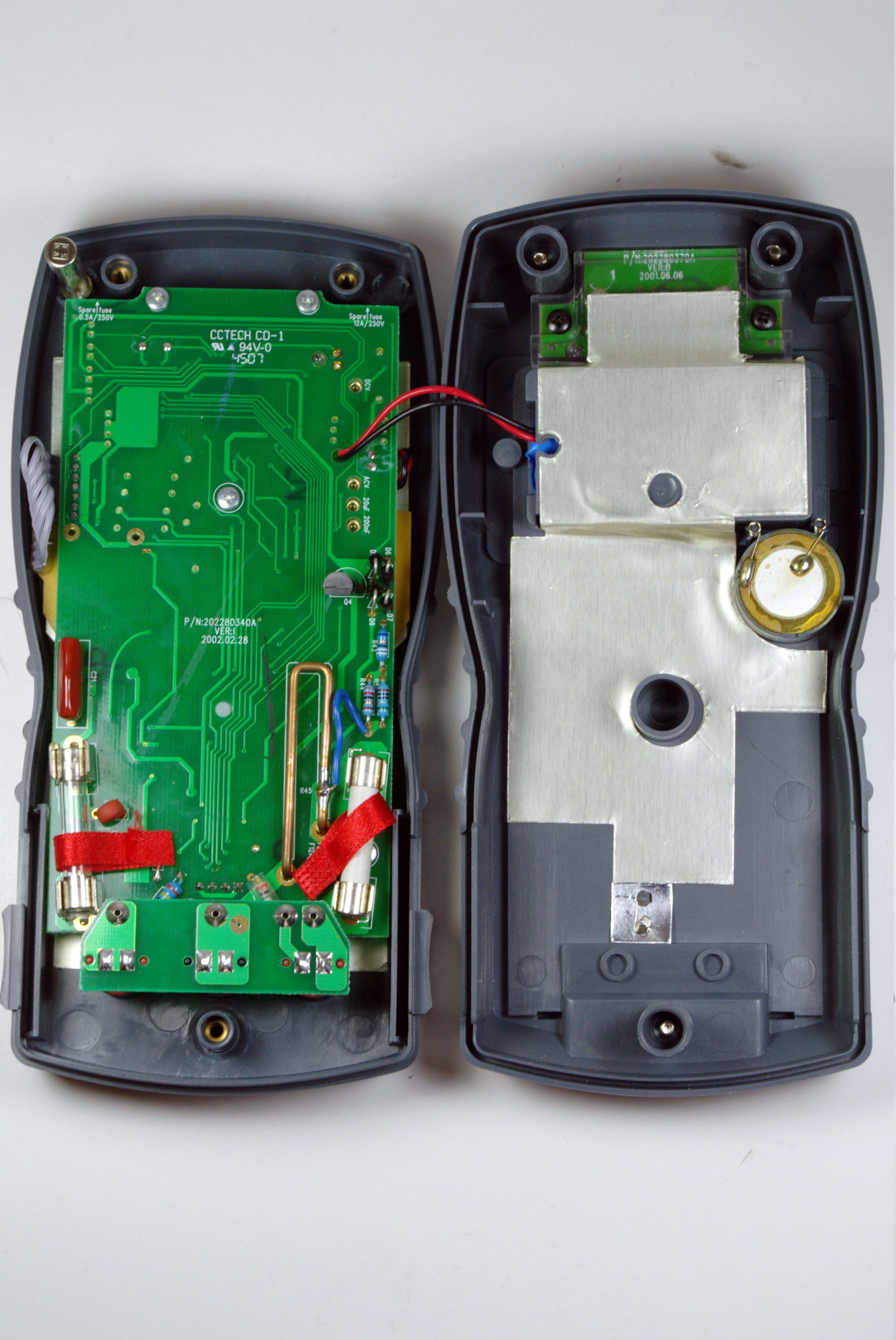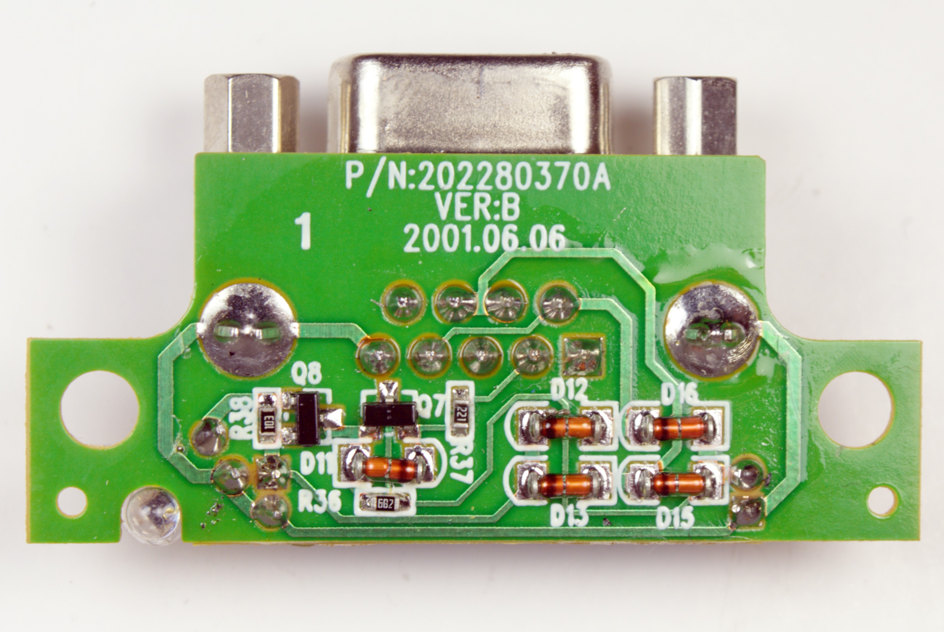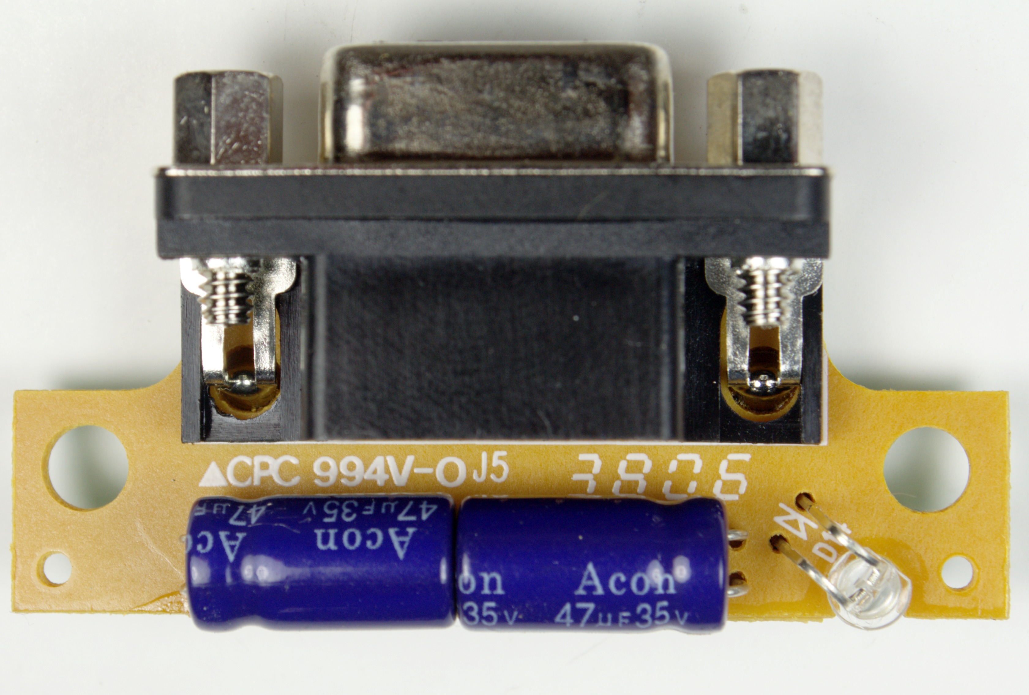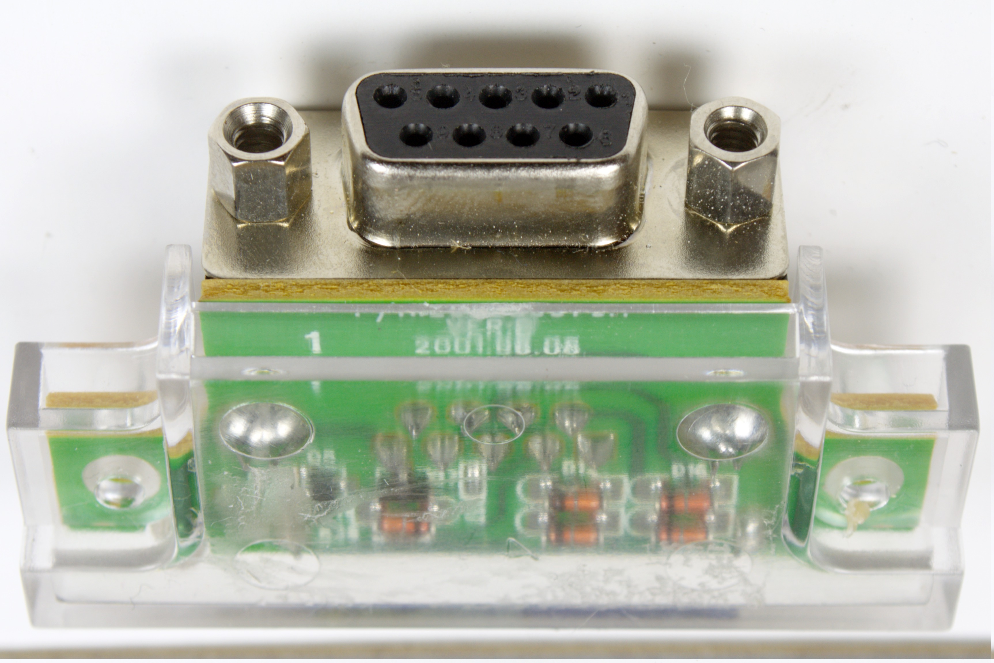 This devices has a standard DB-9 connector at the top, and does not require a special adapter cable. The RS-232 transmitter is optically insulated from the rest of the device. The transmitter uses a separate PCB, integrated into the multimeter's housing. The RS-232 module is powered from the serial port.