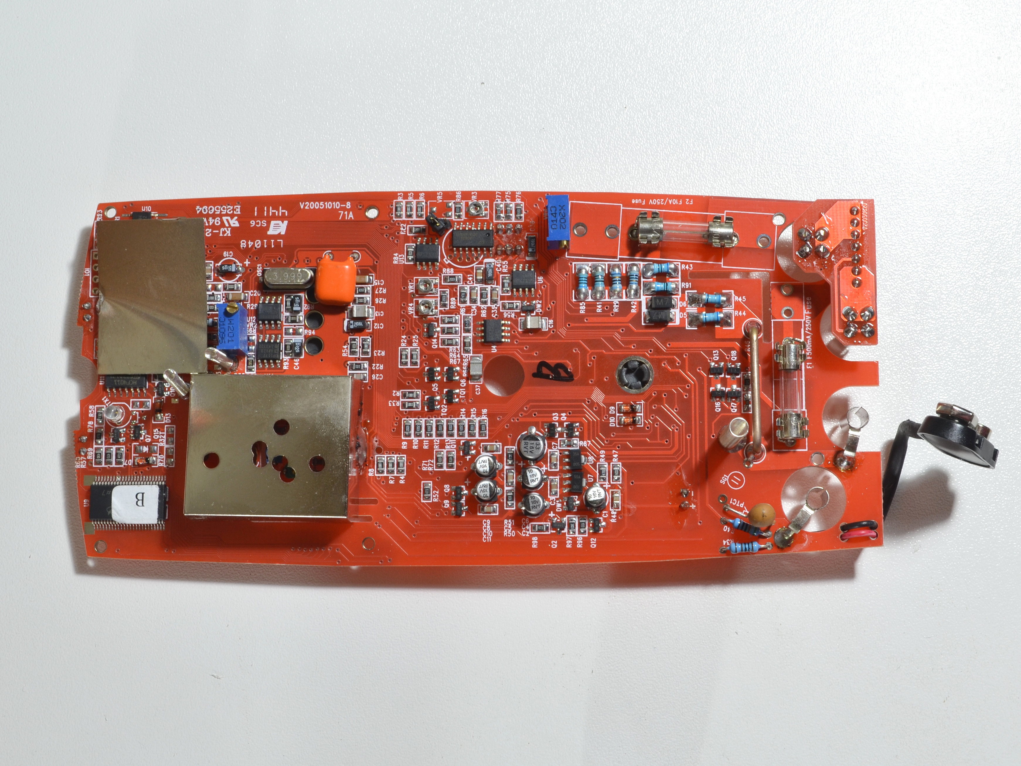- PCB markings: The silkscreen reads "71A V20051010-8", but the correct "B" model indication is apparently added manually by UNI-T using a a sharpie and a sticker.