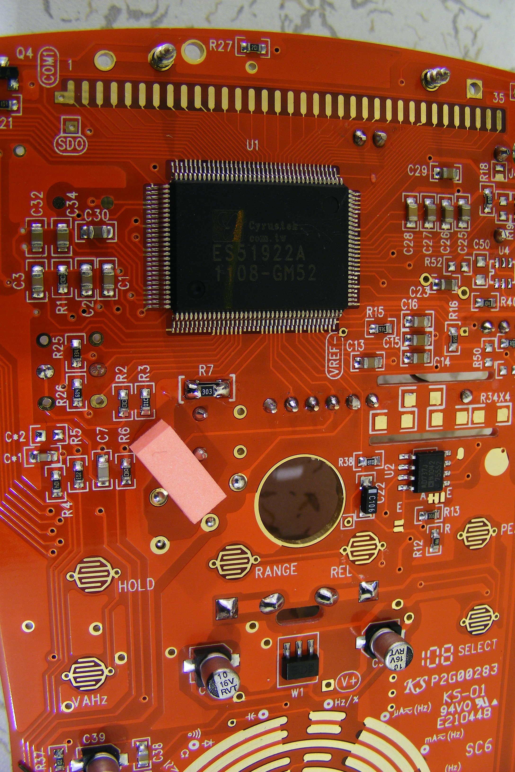 - Cyrustek ES51922 multimeter chip (ES51922A actually, as per various photos: 1, 2, 3, 4)