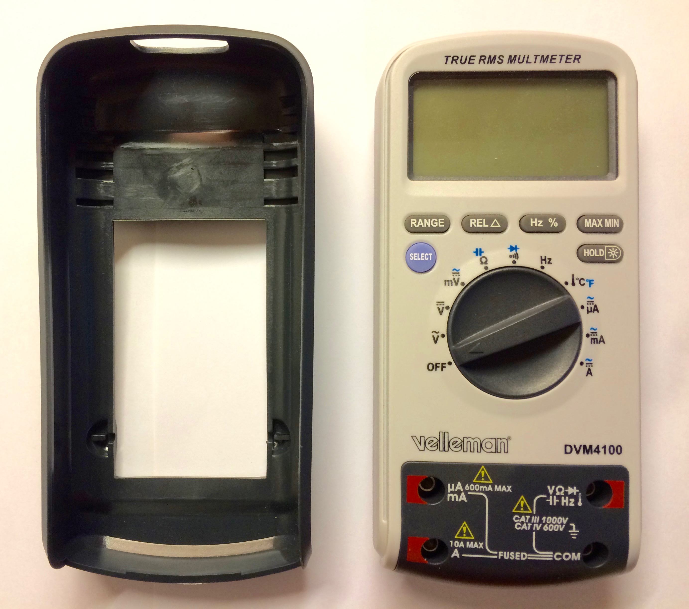 The Velleman DVM4100 model looks identical to the PeakTech 3415, except for its labels and blue case color. The DVM4100 also has similarities with the V&A VA40B but with a different protocol version. This could suggest that those devices share the Dream Tech International DTM0660 as main IC since it's possible to modify certain protocol characteristics using this IC.