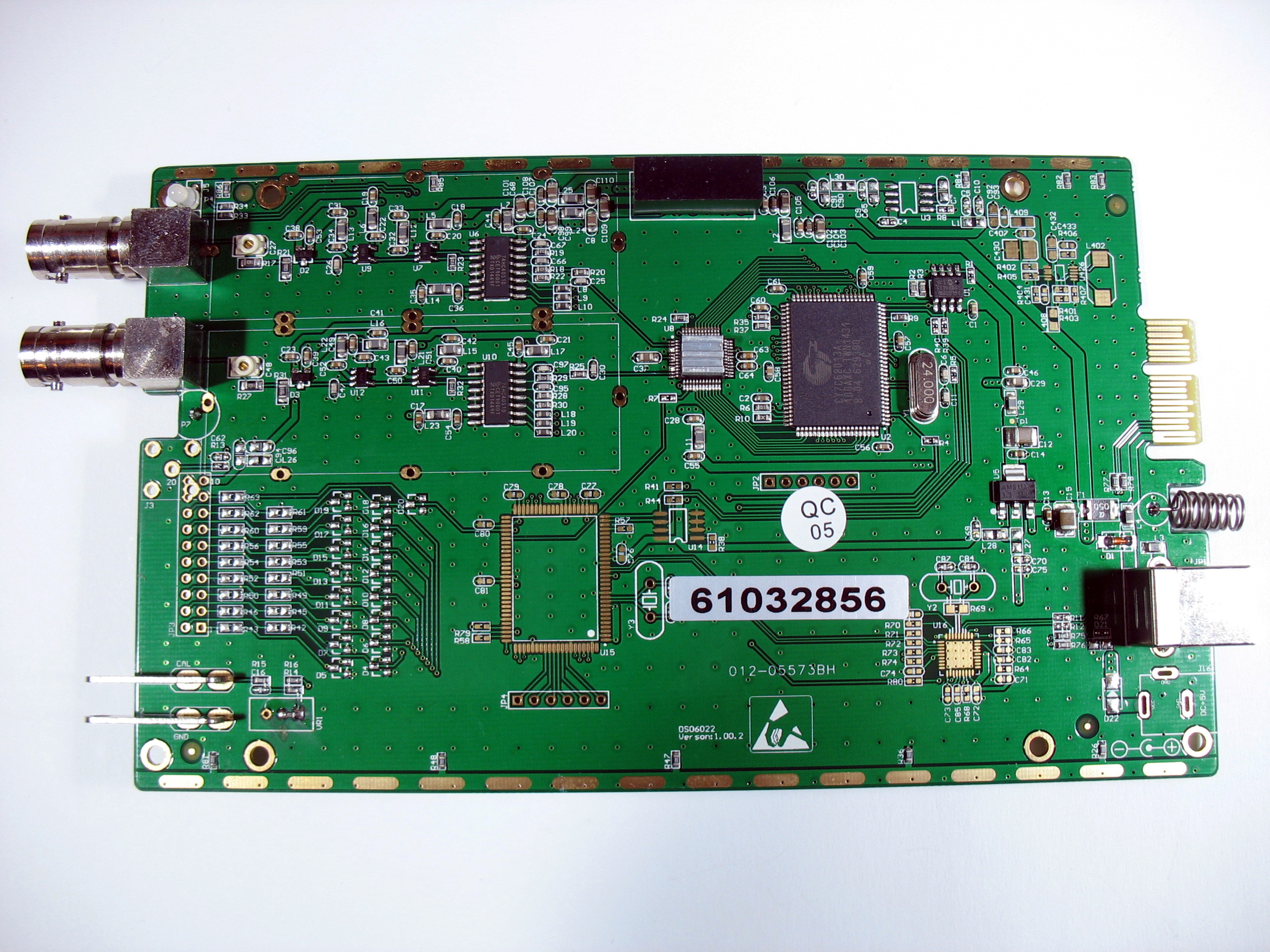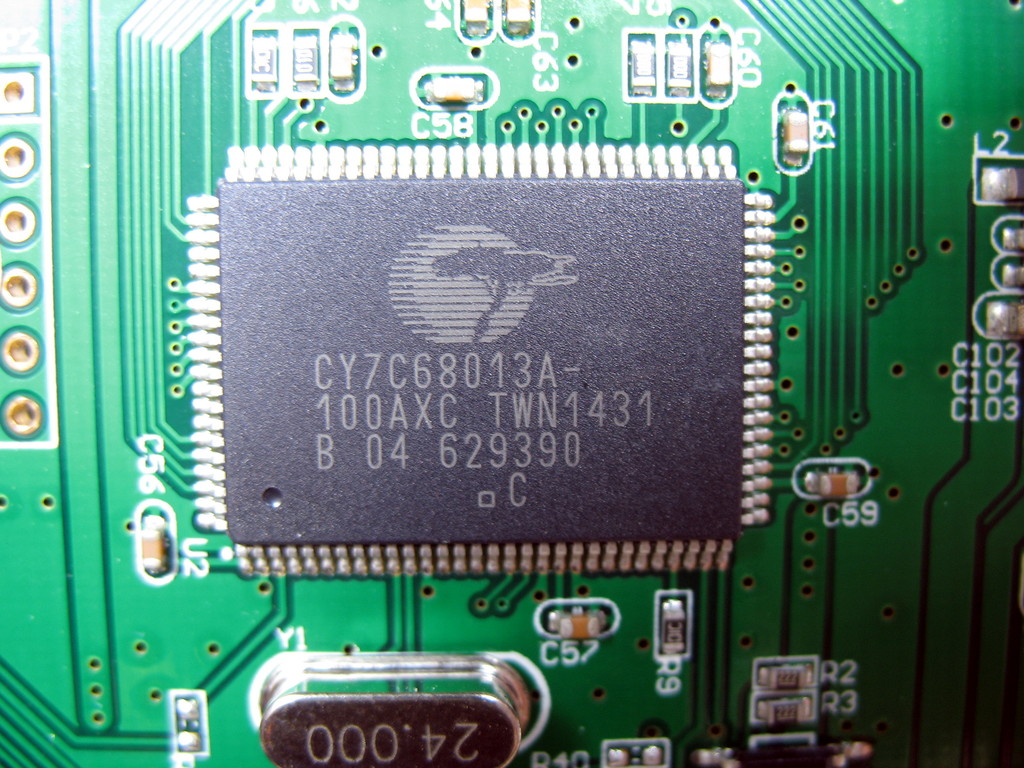 - USB: Cypress CY7C68013A-100AXC (FX2LP) (datasheet)