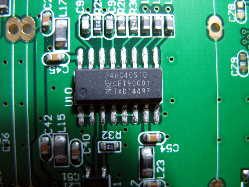 - 2x 8-channel analog multiplexer/demultiplexer: NXP 74HC4051D (datasheet)