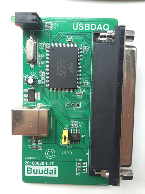- USB: Cypress CY7C68013A-100AXC (FX2LP)