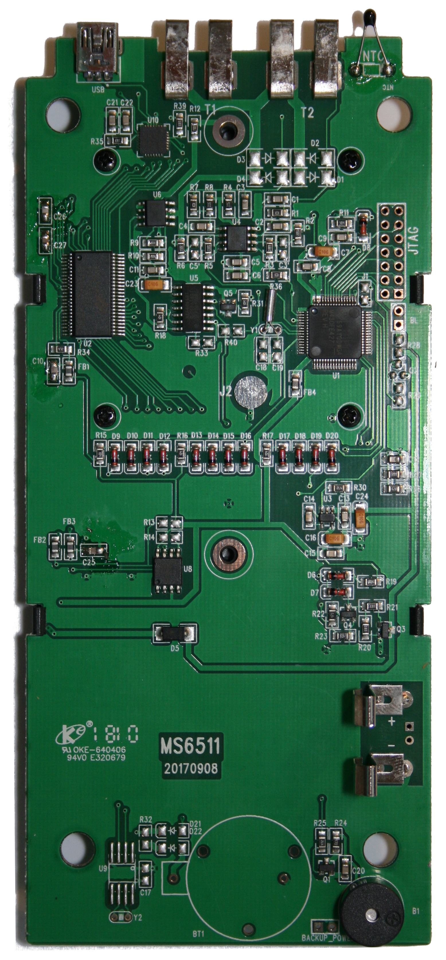 The device communicates with the host via a SiLabs CP2102 USB interface chip. Communication parameters are 9600/8n1. Live data is transmitted as soon as the button Setup/PC-Link is pressed for 3 seconds.